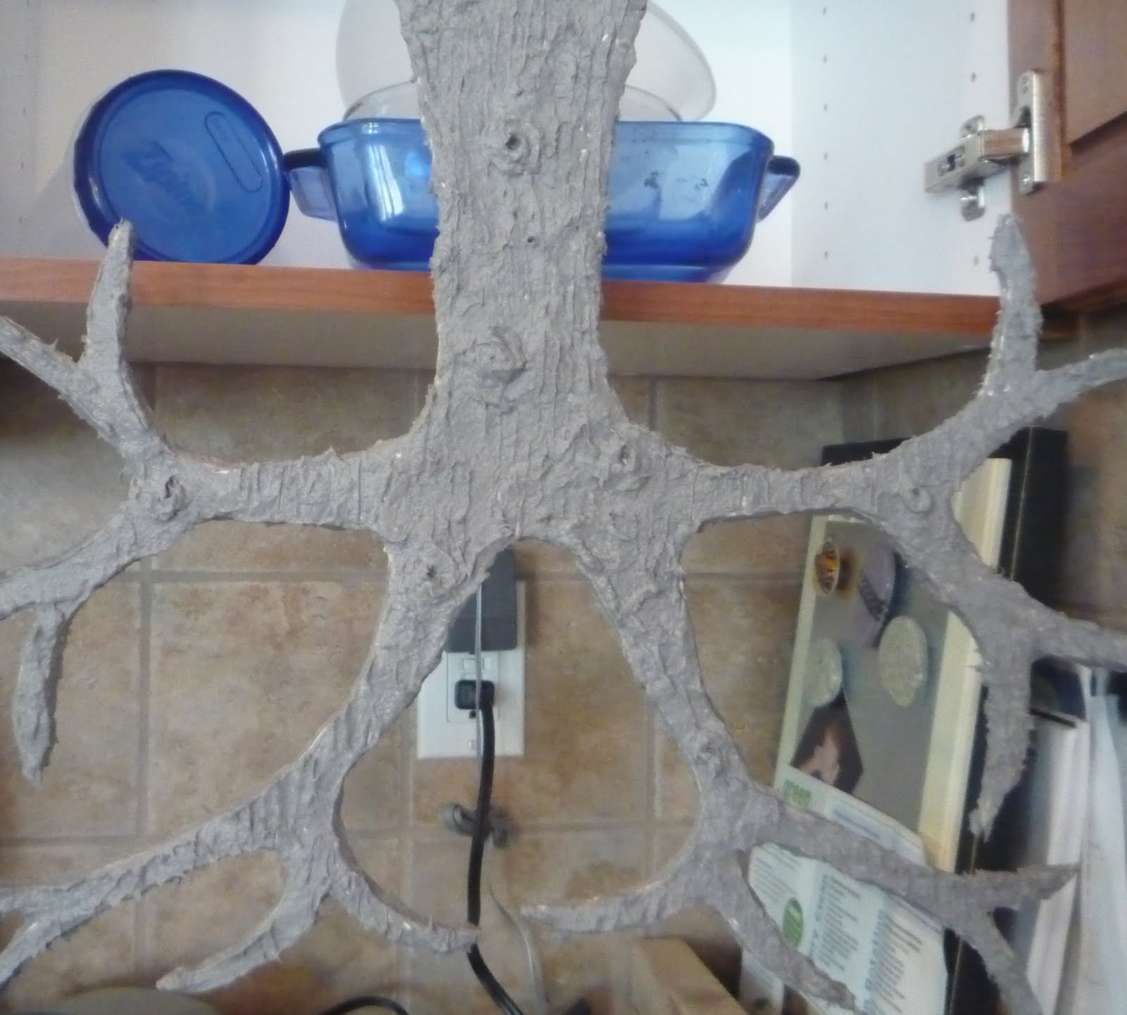 and after cutting her tree form from foam board, she covered it with the Celluclay,