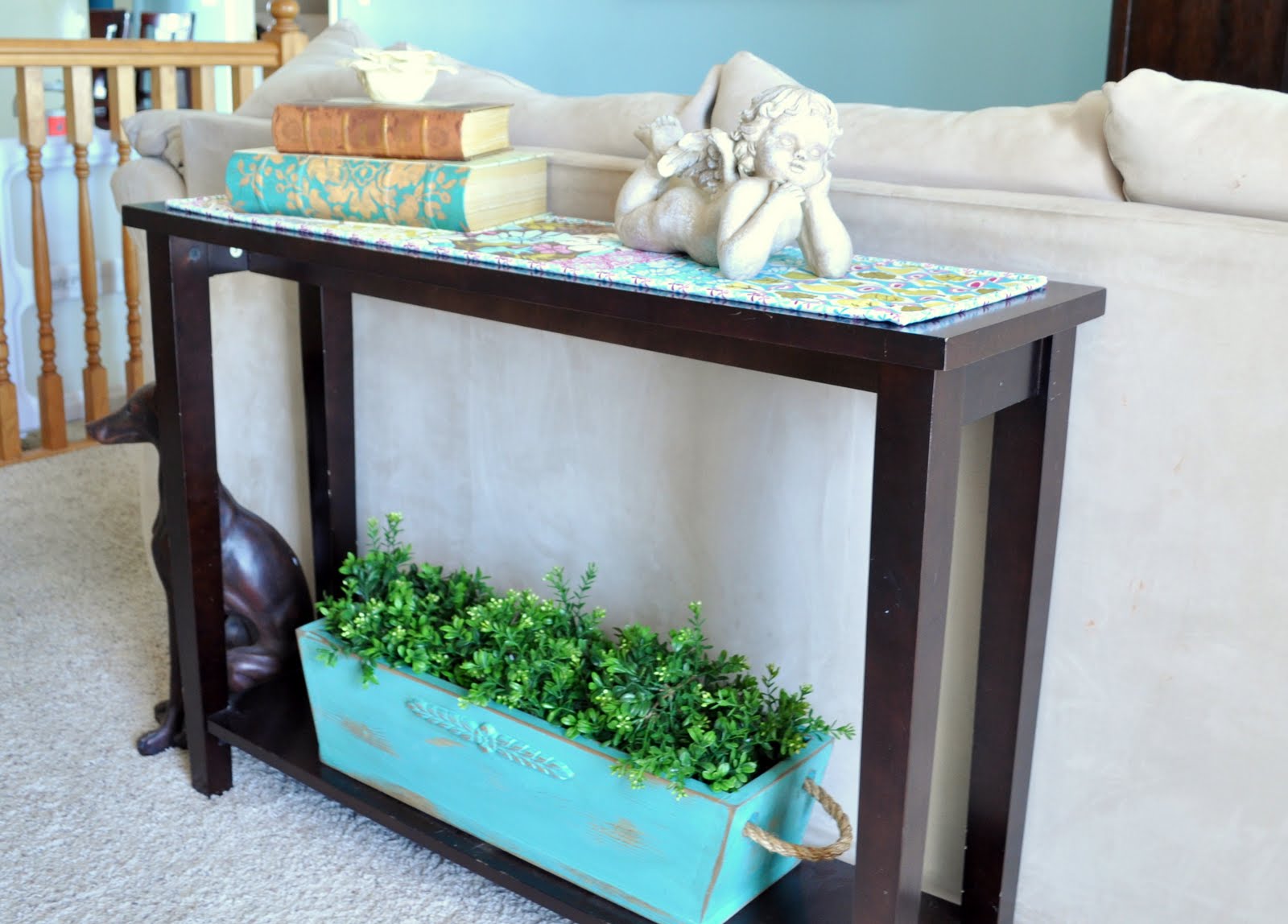 Wiped it clean, applied the stencils, painted in the stencils with Krylon Gloss Black, sanded one last time, then applied a layer of dark walnut stain and a sealer.