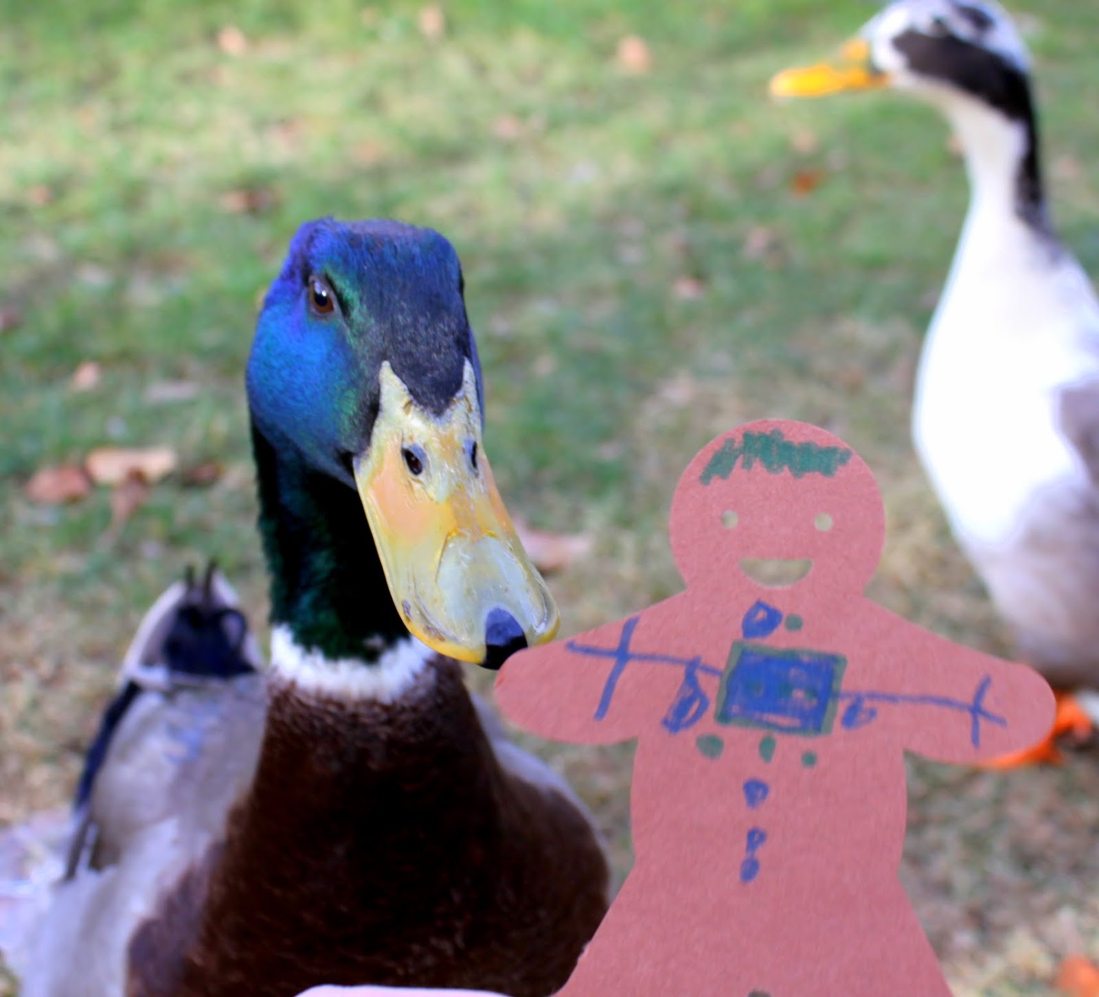 love to snack on anything especially tomatoes and little gingerbread boys! These ducks are named Buddy and Jo Jo. Buddy tried to take a bite out of Gingy and